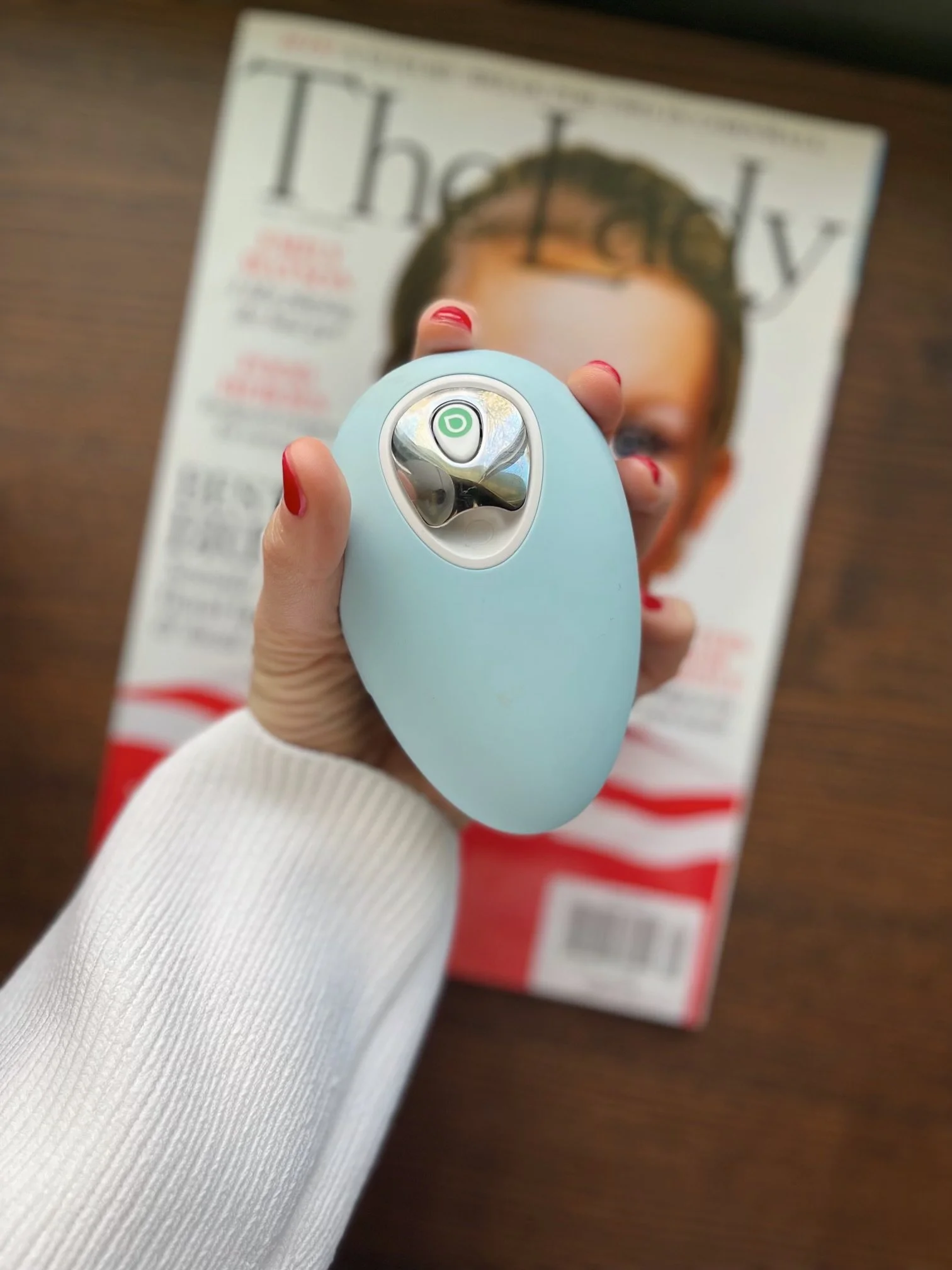 What I am sure of is that I liked using my Droplette right away. After applying creams or oils to my face, I’m left searching for somewhere to wipe my hands which, following the bathing rituals surrounding four kids, is not always within reach. I also enjoy the invitation to a moment of relaxation as I close my eyes and feel the cool mist on my face, a joy heightened by the belief, mistaken or not, that I’m becoming prettier with each nanoparticle.